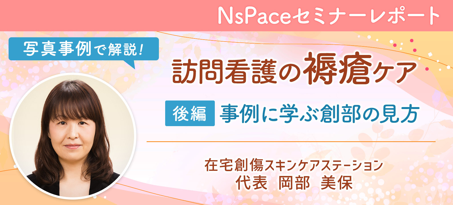 2023年2月10日に開催されたNsPace(ナースペース)のオンラインセミナー「写真事例で解説!訪問看護の褥瘡ケア」。在宅創傷スキンケアステーションの代表で、皮膚・排泄ケア認定看護師でもある岡部美保さんを講師としてお迎え…