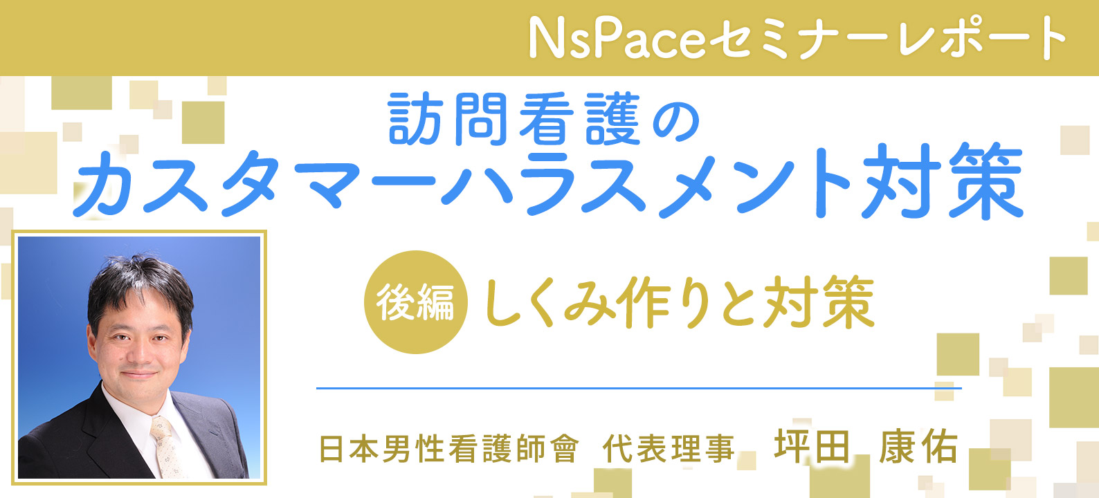 NsPace(ナースペース)のオンラインセミナー「訪問看護のカスタマーハラスメント対策~安心して訪問看護ができるために~」(2025年6月20日開催)では、医療現場のカスタマーハラスメント(以下「カスハラ」)対策に詳しい坪田康佑先生を講師にお迎えし、訪問看護業界のハラスメントの実態や、講じるべき対策について教えていただきました。セミナーレポート後編では、具体的なカスハラ対策についてご紹介します。%b…